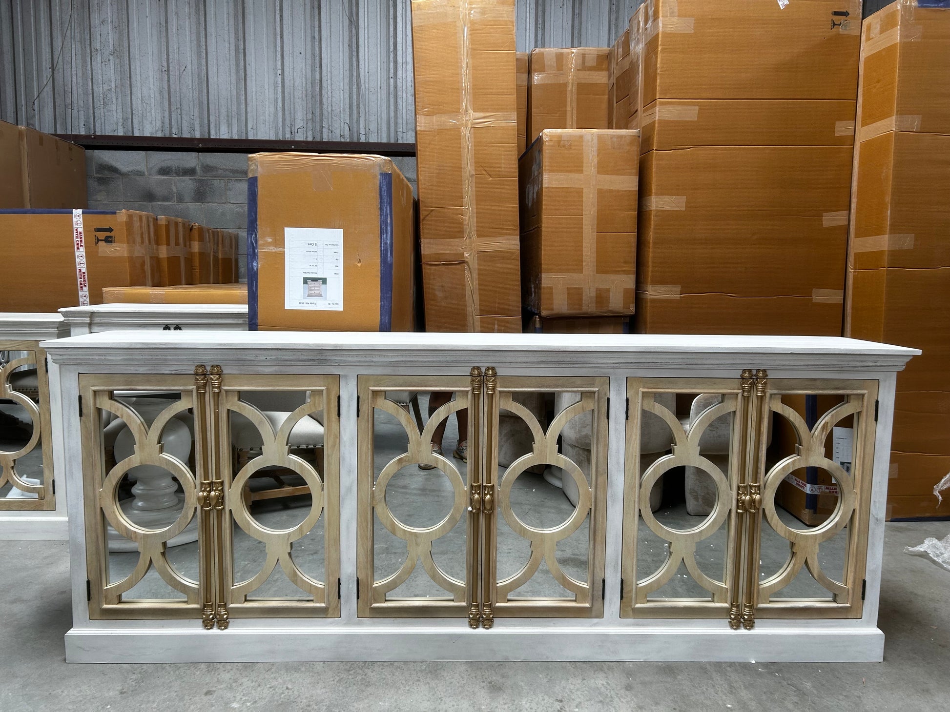 This #855-a sideboard is expertly crafted from durable mango wood, with natural doors and elegant gold hardware. The perfect addition to any room, it offers both style and functionality. With its sleek design and top-quality materials, this sideboard is sure to enhance your home decor.